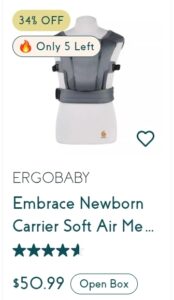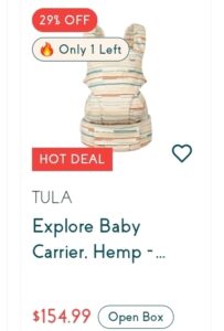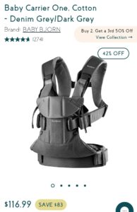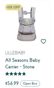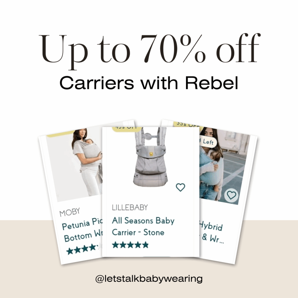 If you’re shopping for a baby carrier, you don’t always need to pay full price. Rebel regularly offers steep discounts on some of the most popular brands—often 30–50% off retail. Currently they are having a major sale with items up to 70% off! Many of my favorite carriers can be found there for under $150 (sometimes even under $100!).